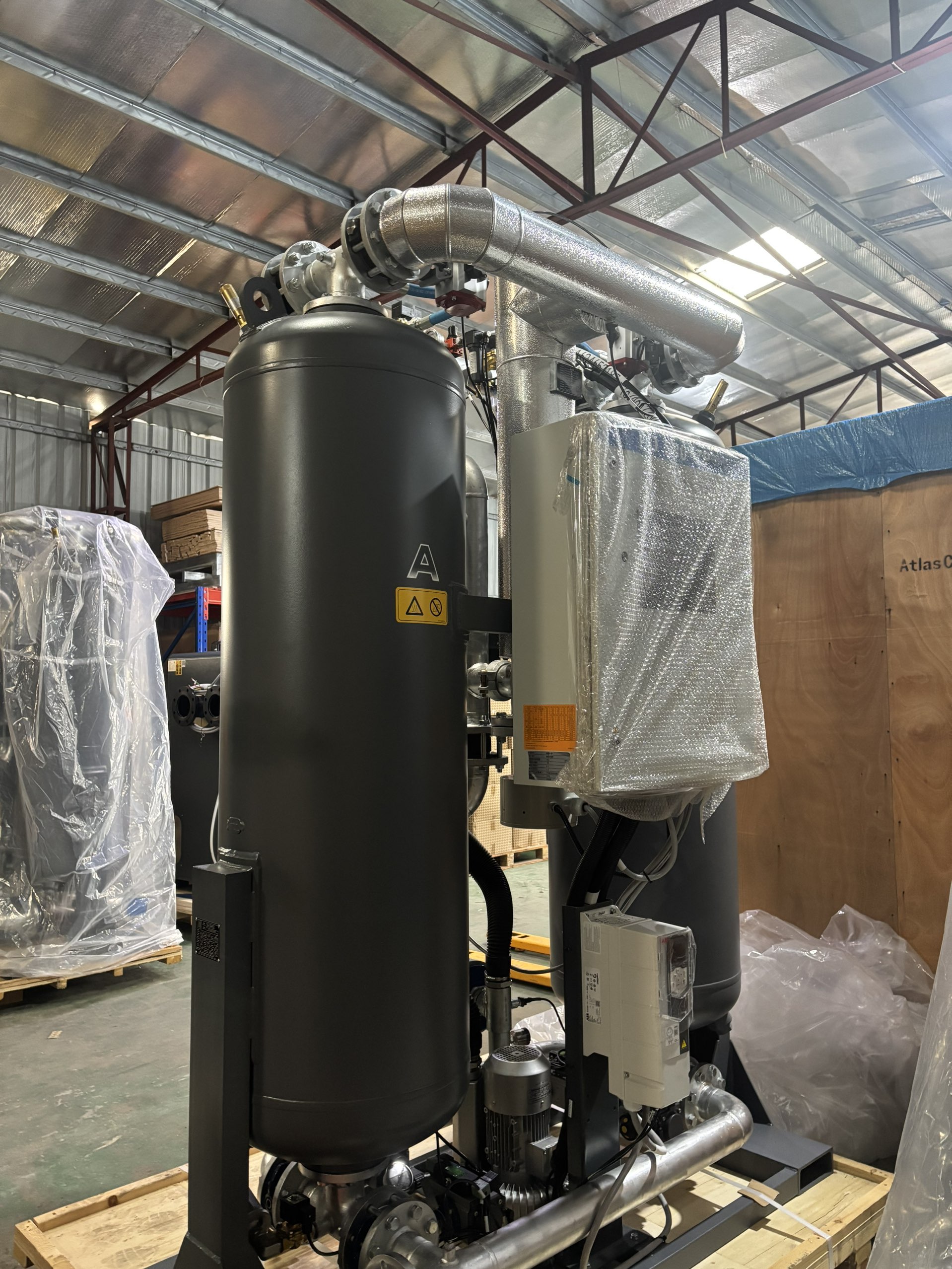 DeAtlas Copco tryckluftstorkarär energieffektiv och mycket effektiv: vissa modeller har innovativ design, som Cerades-torken, där luften kan passera direkt genom solida rör utan motstånd, vilket avsevärt minskar energikostnaderna.